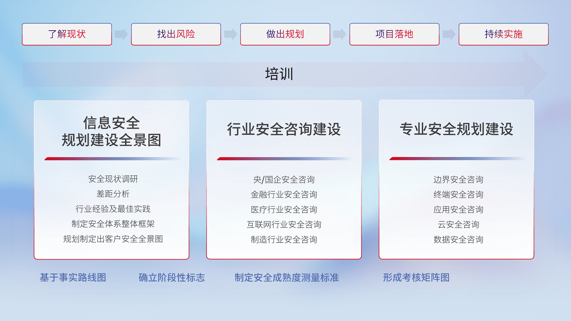 针对客户行业特性,,,将宏观的安全战略和需求,,通过专业的交付服务,,实现项目落地,,,为客户提供标准规范的集成交付服务。。。。